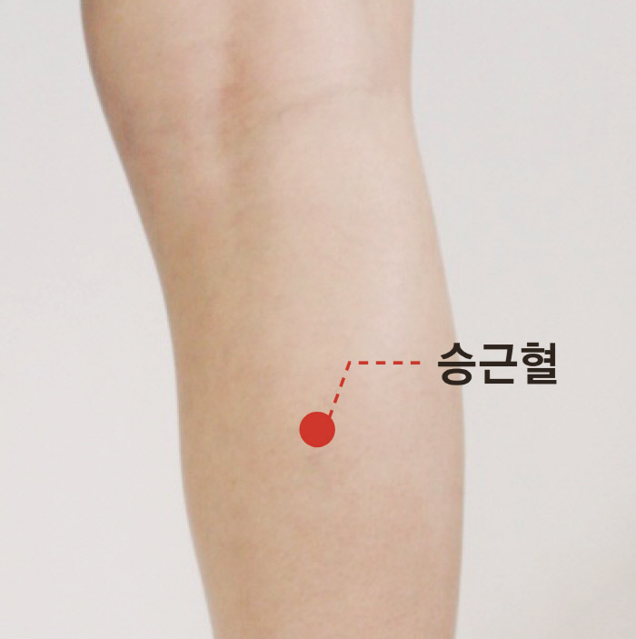② 효능 : 종아리 근육을 풀어주는데 탁월하며 허리와 무릎 쪽의 근육 또한 개선이 된다. 특히, 종아리에 쥐가 났을 때 지압을 해주면 회복하는데 효과가 좋으며 승근혈 또한 다리 혈액순환과 부종제거에 좋다.